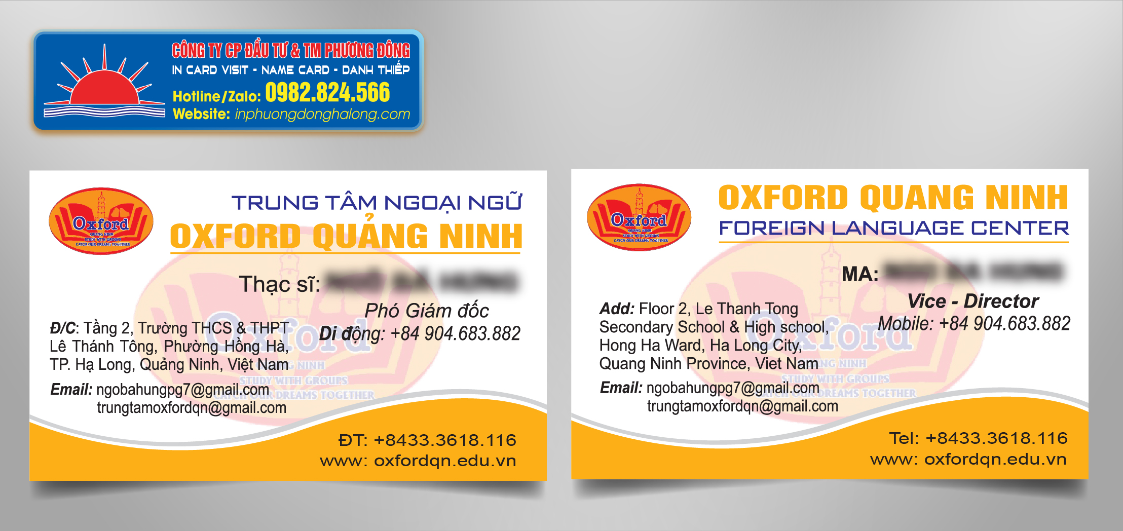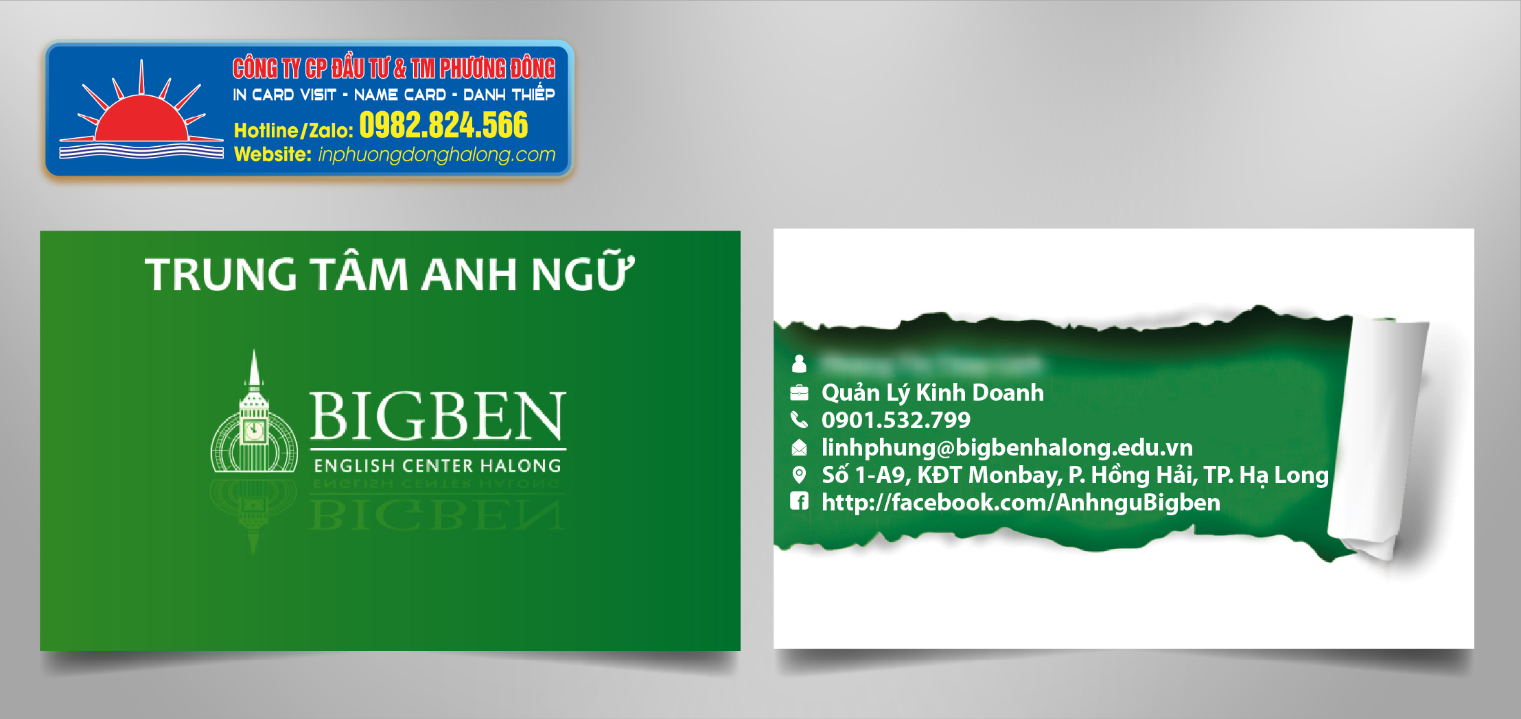Mẫu card visit trung tâm tiếng anh, card visit ngoại ngữ