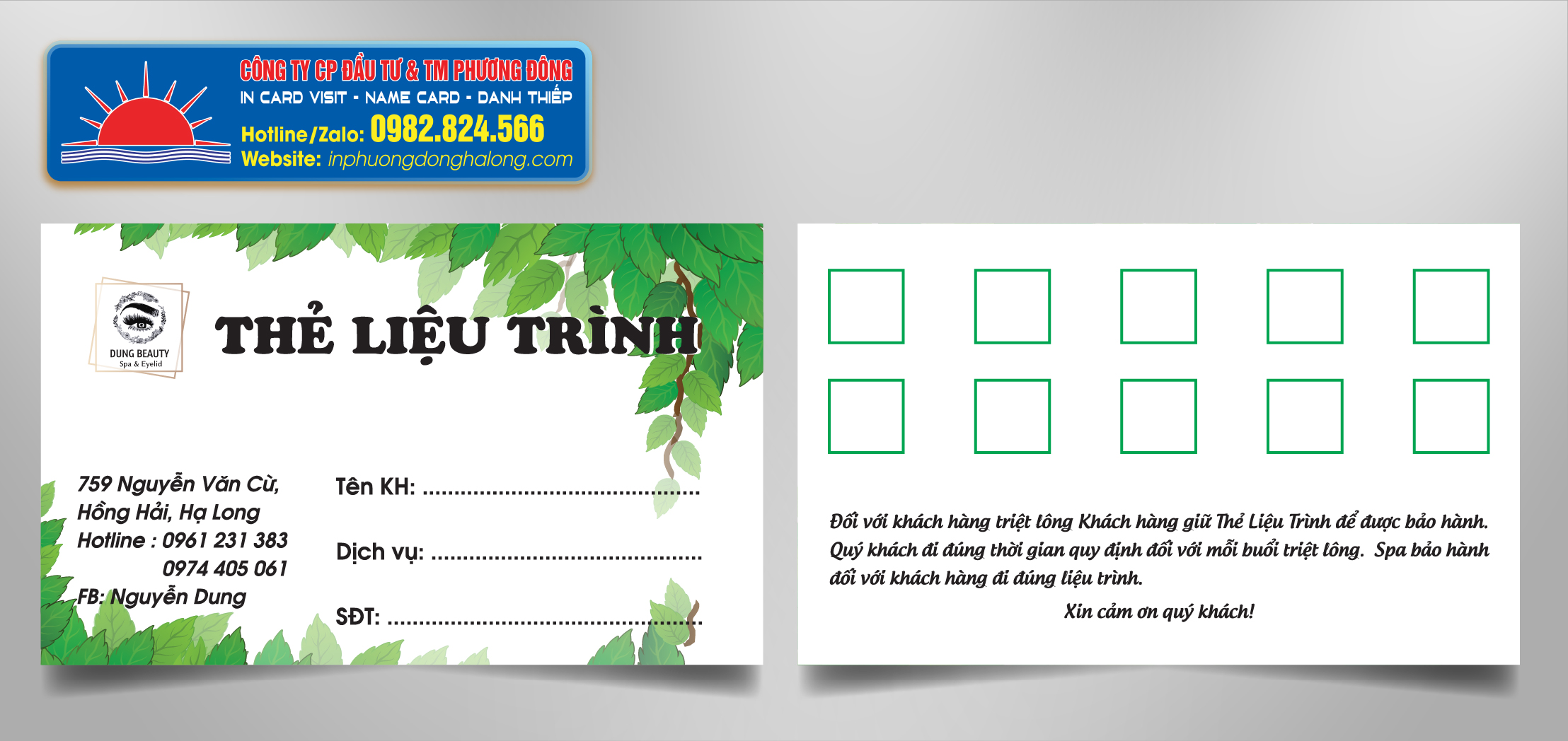 Vì vai trò đặc biệt của thiết kế card visit chuyên nghiệp đều rất kỹ lưỡng từ khâu thiết kế đến khâu in ấn. Đặc biệt giai đoạn chọn giấy in card lại càng quan trọng. Thiết kế đẹp, công nghệ in ấn tốt nhưng chọn sai giấy thì coi như “muối đổ biển”. Việc chọn sai giấy in vô cùng nguy hiểm. Để tránh những trường hợp chọn nhầm giấy in card khi in card visit đẹp ở Hạ Long, các bạn nên nhờ nhân viên tư vấn in card visit của Phương Đông Hạ Long hướng dẫn chi tiết hơn.