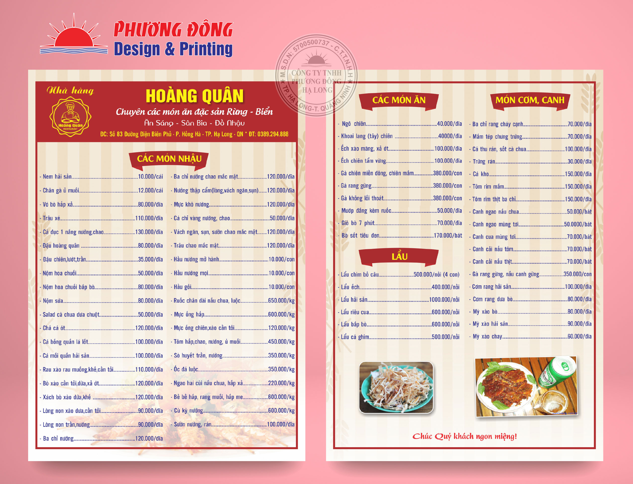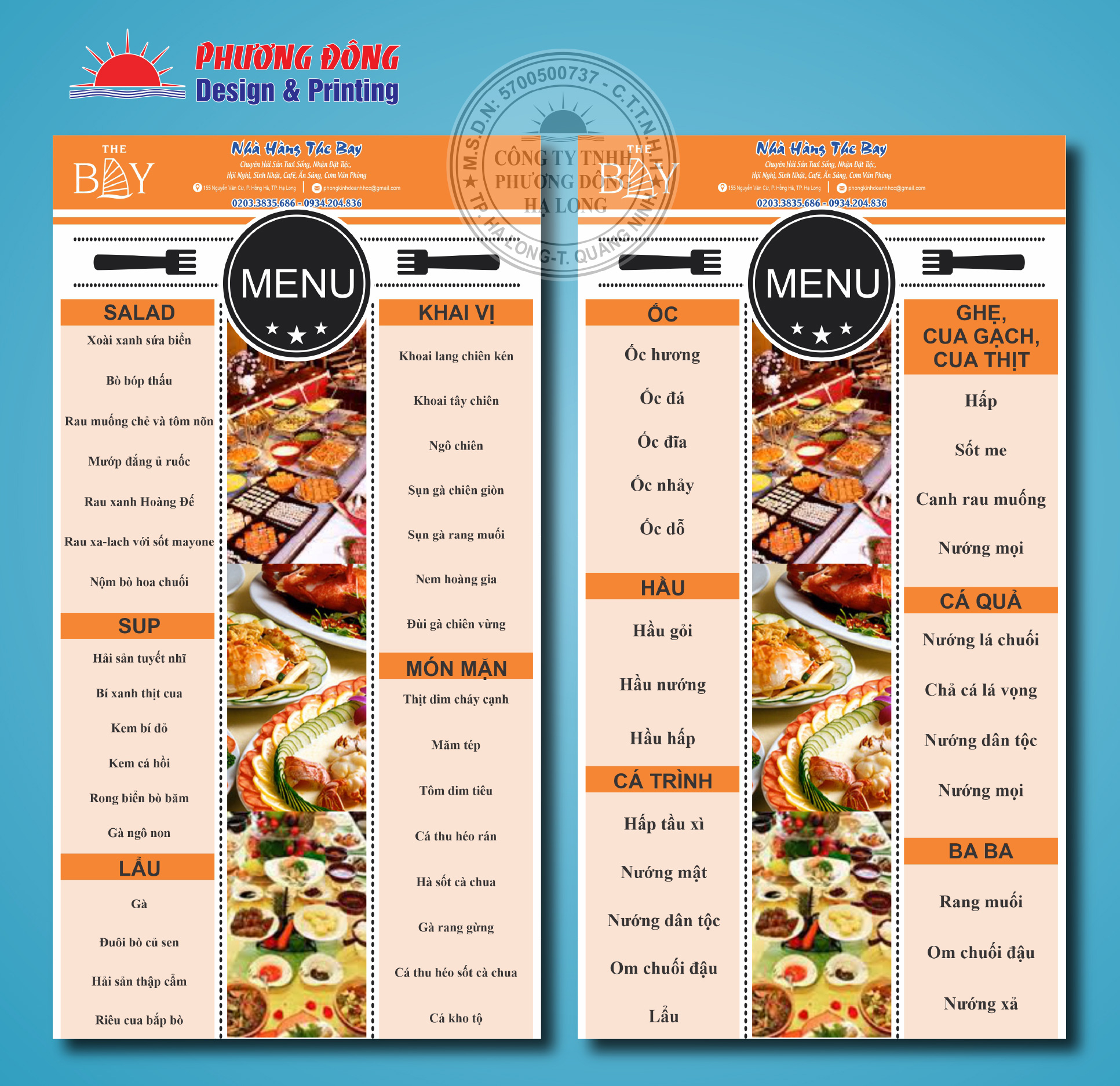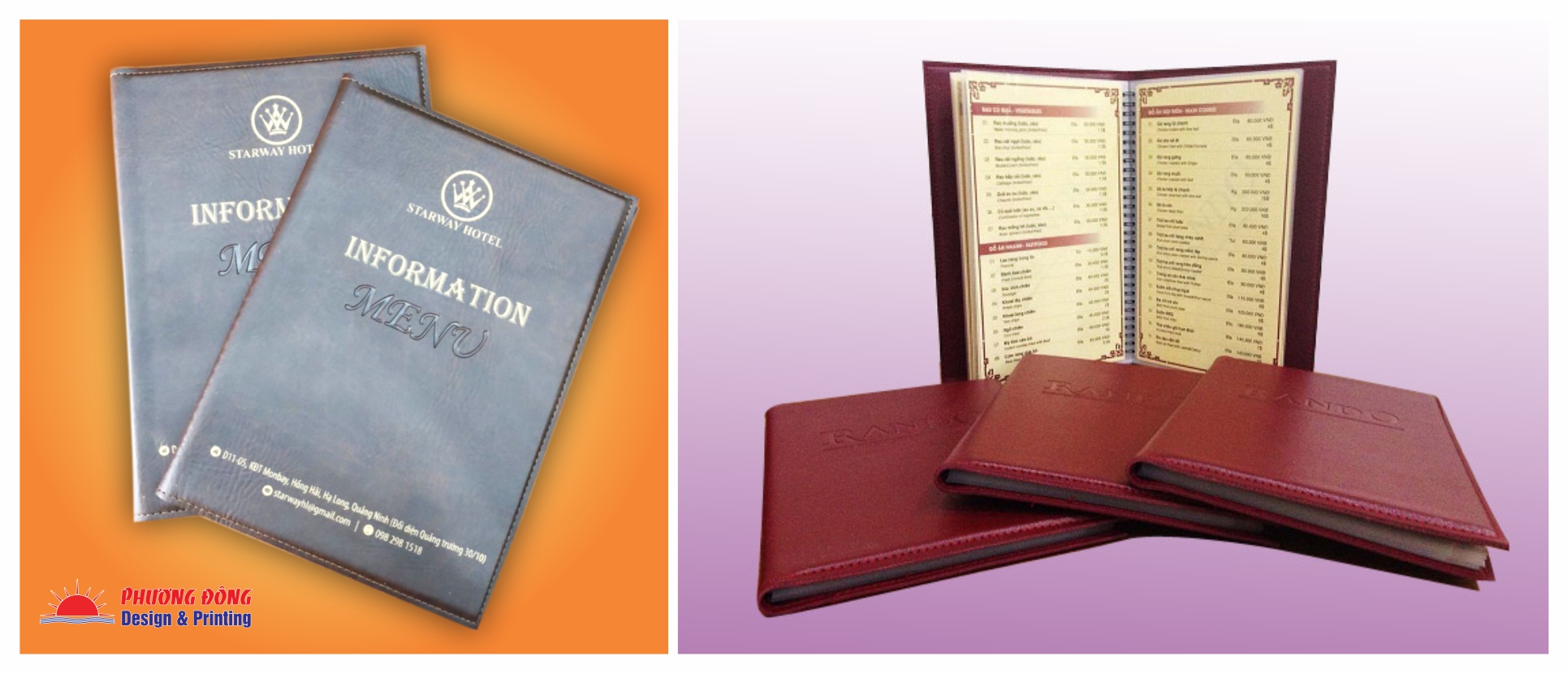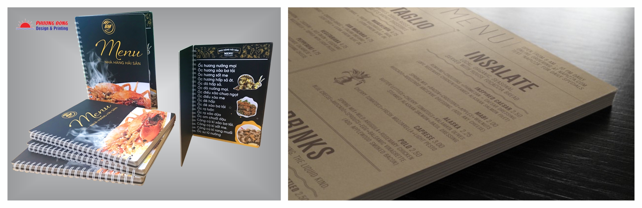 Công ty in Phương Đông Hạ Long cung cấp dịch vụ thiết kế và in ấn menu, làm menu theo yêu cầu.