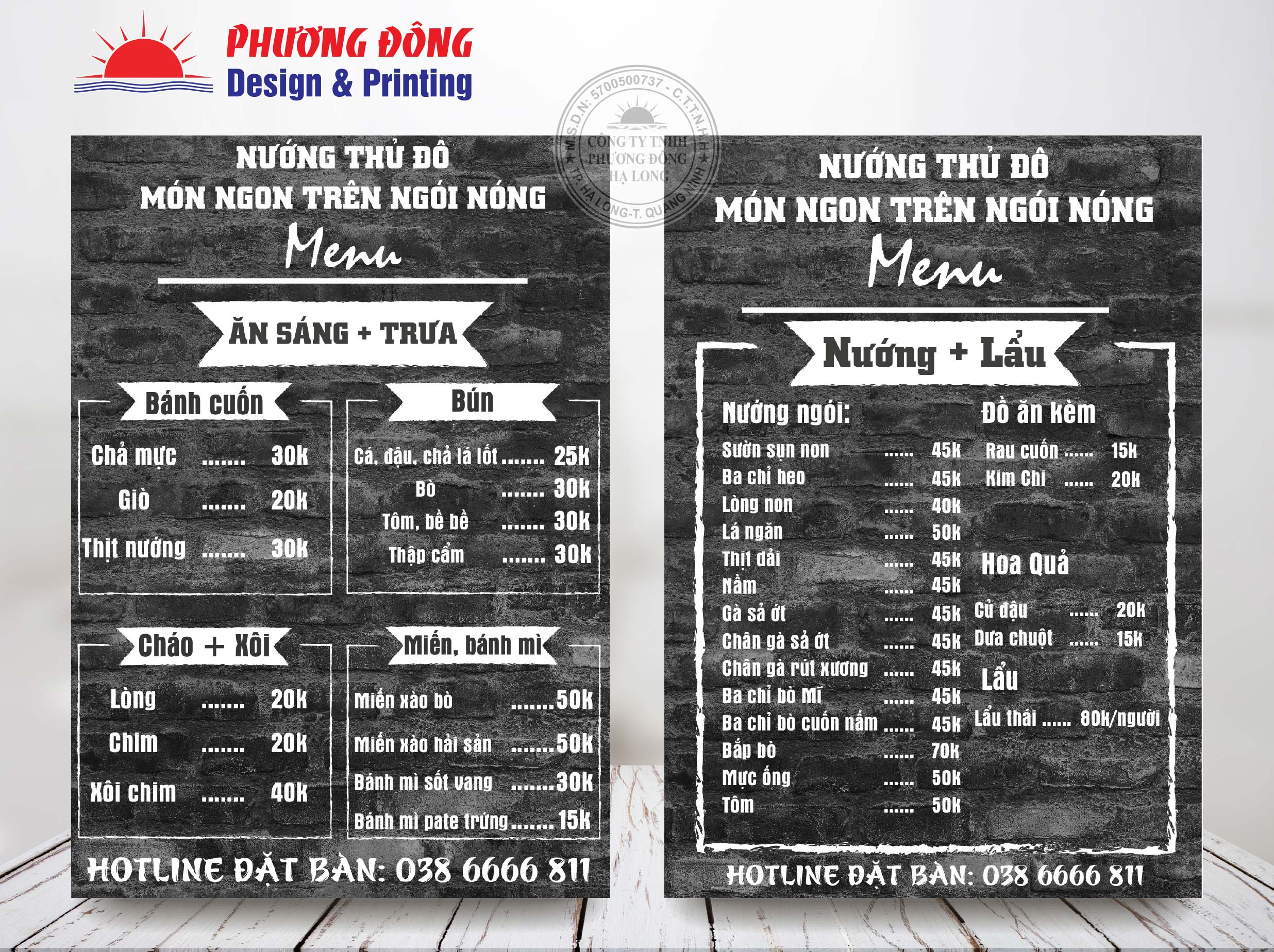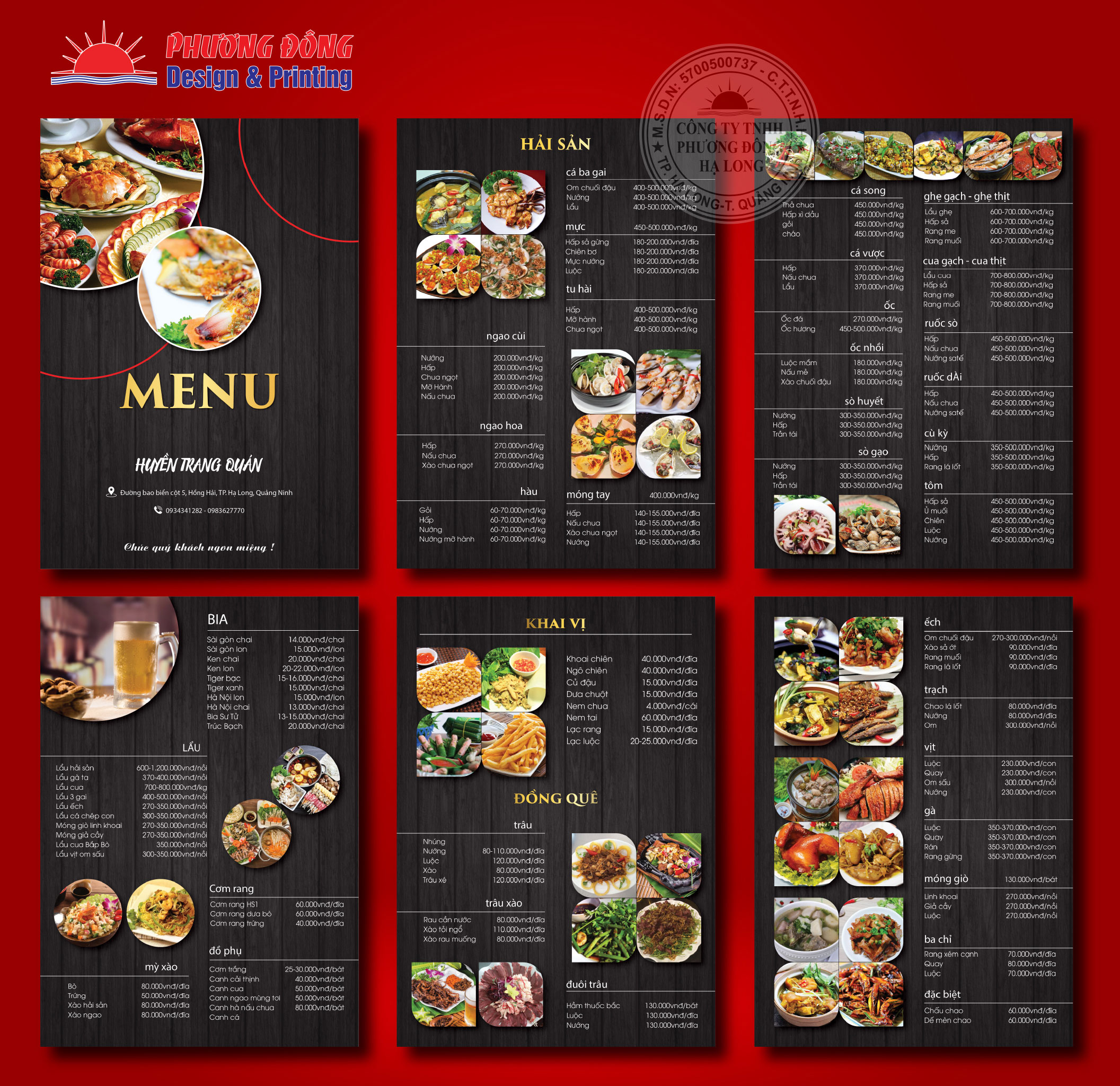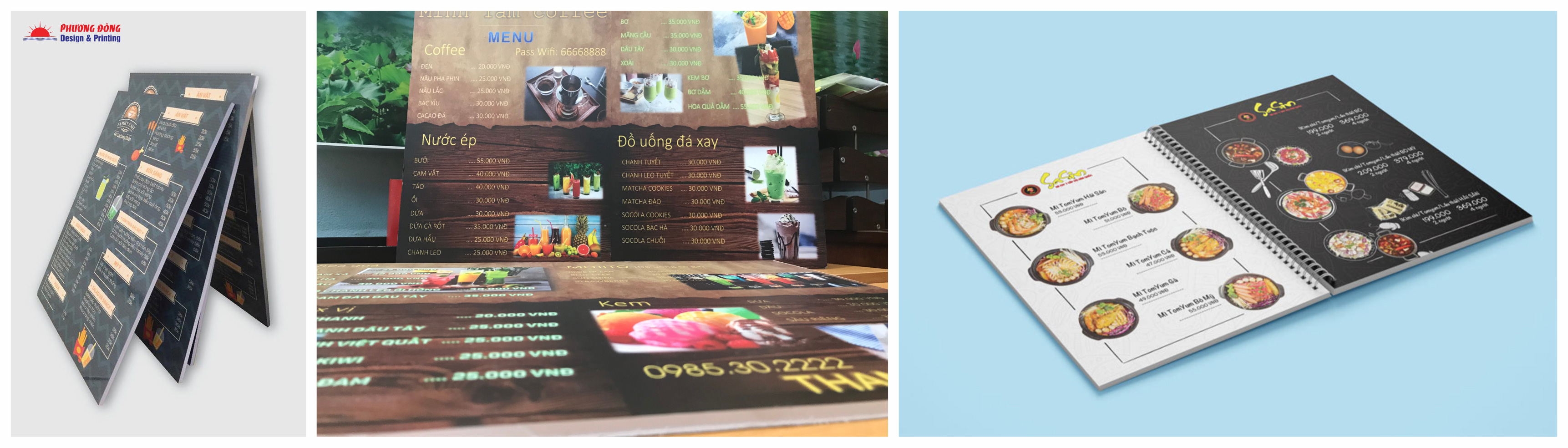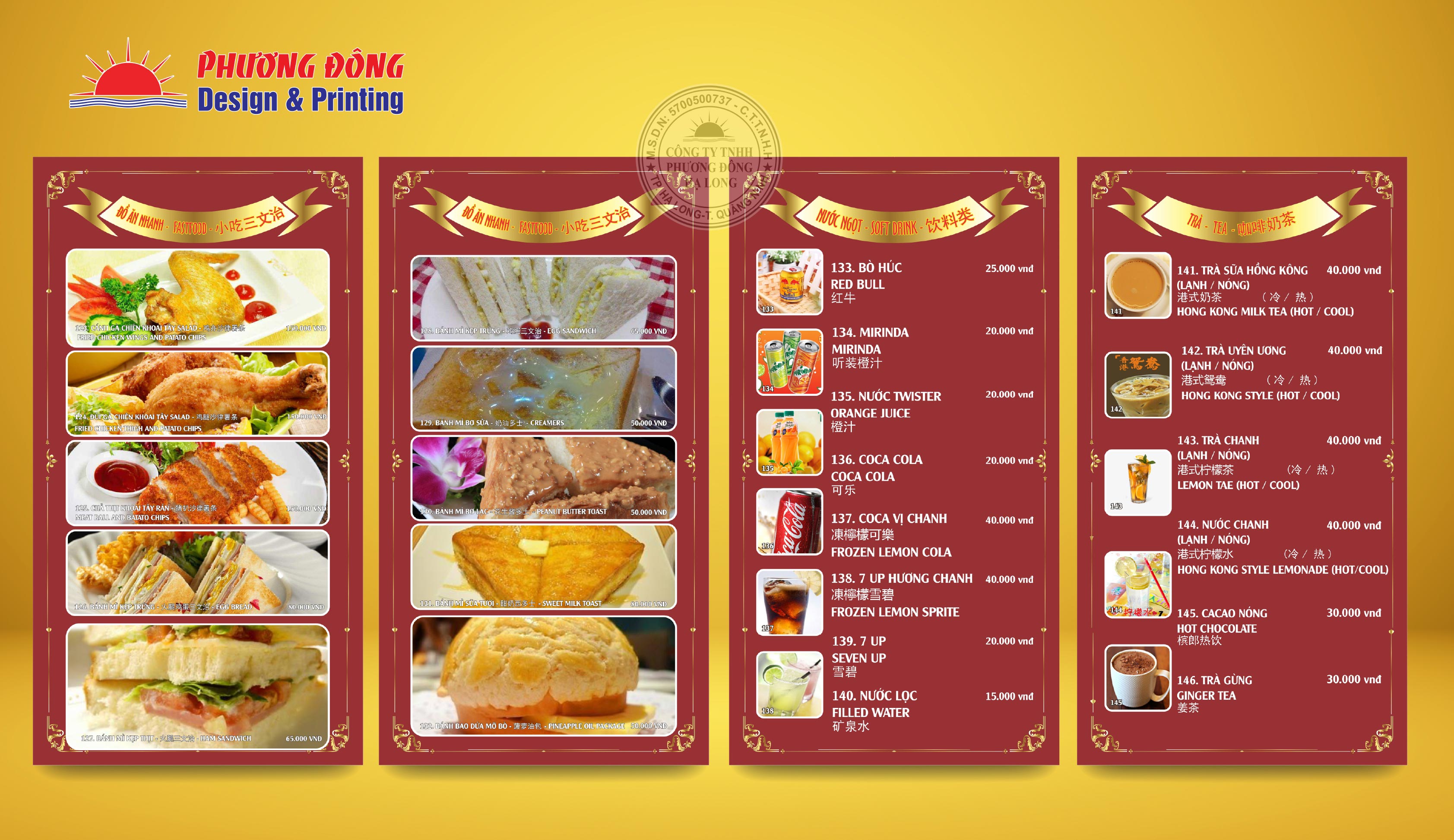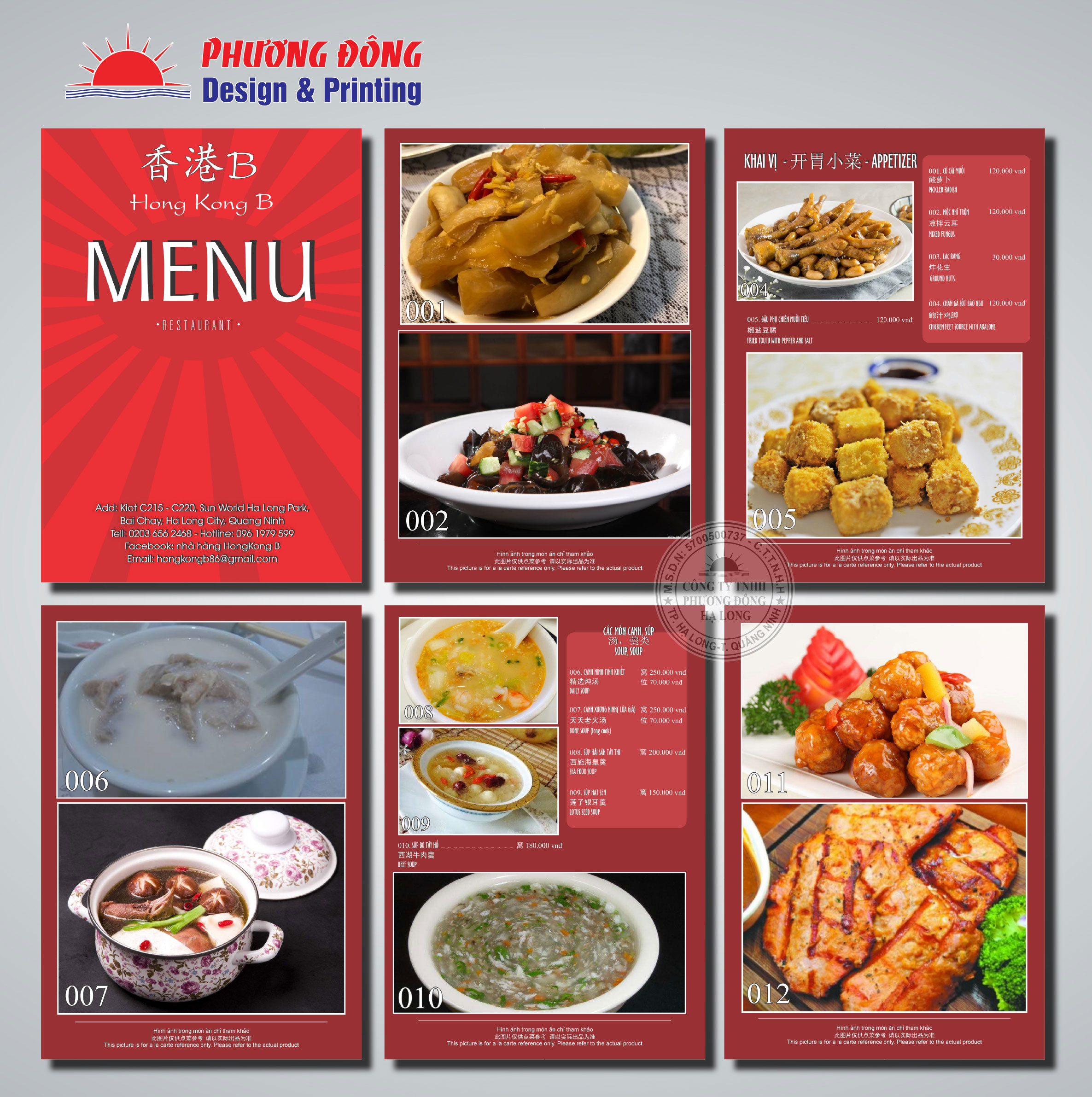 Công ty in Phương Đông Hạ Long cung cấp dịch vụ thiết kế và in ấn menu, làm menu theo yêu cầu.