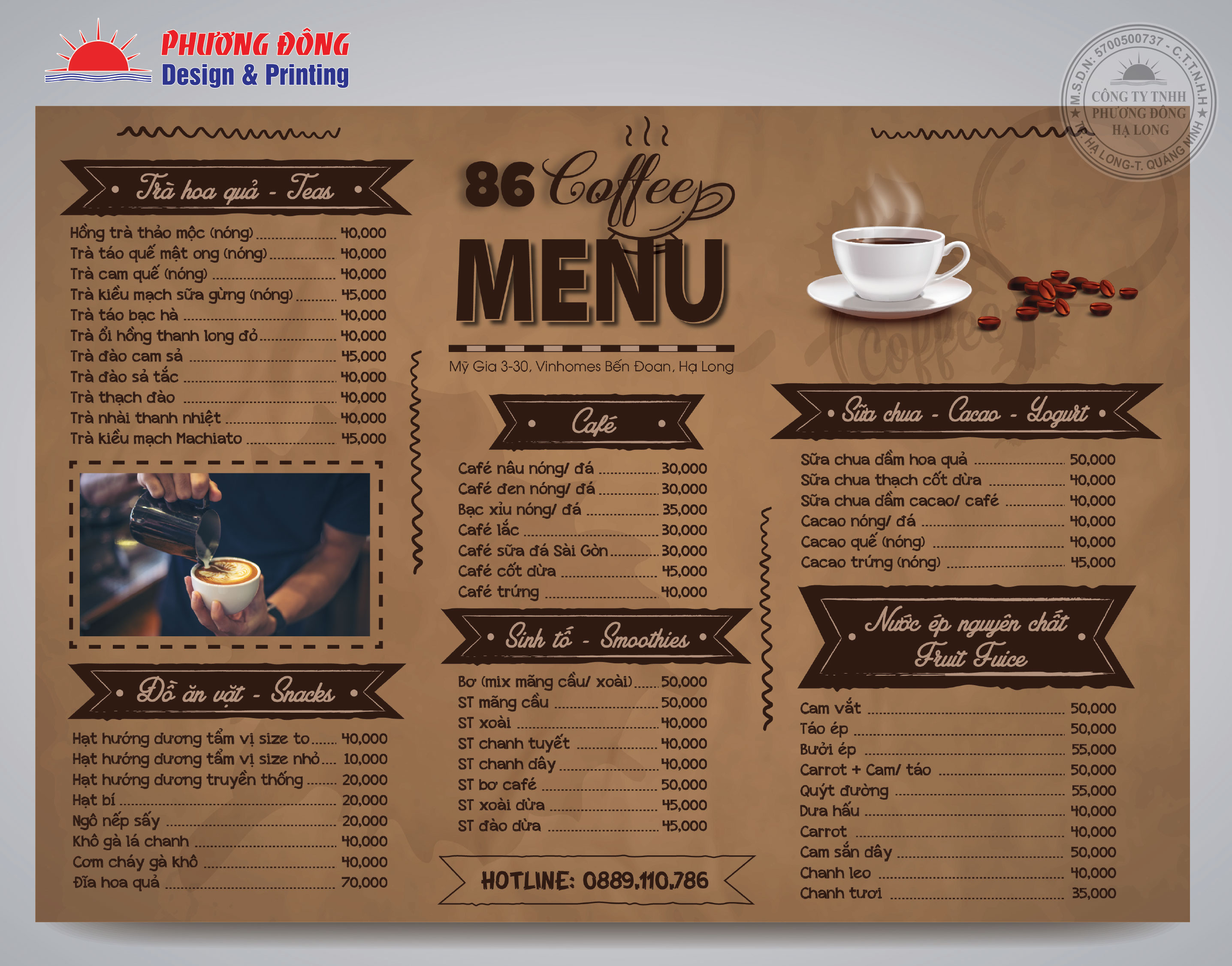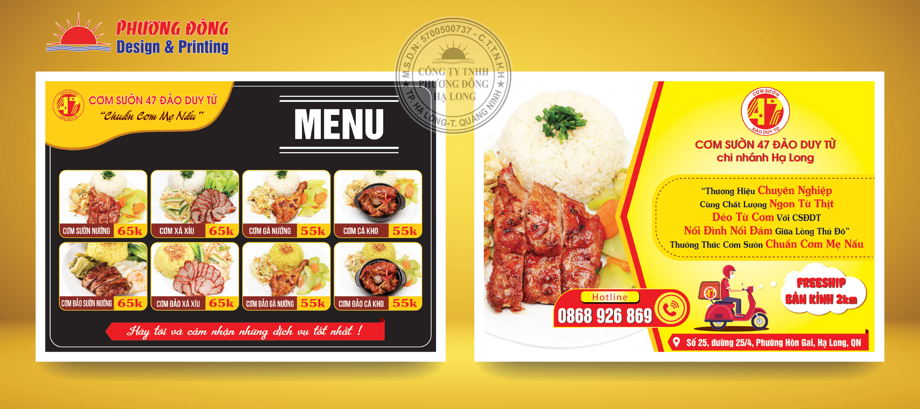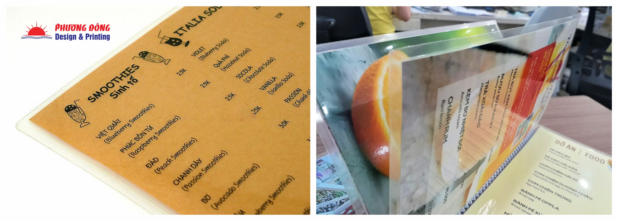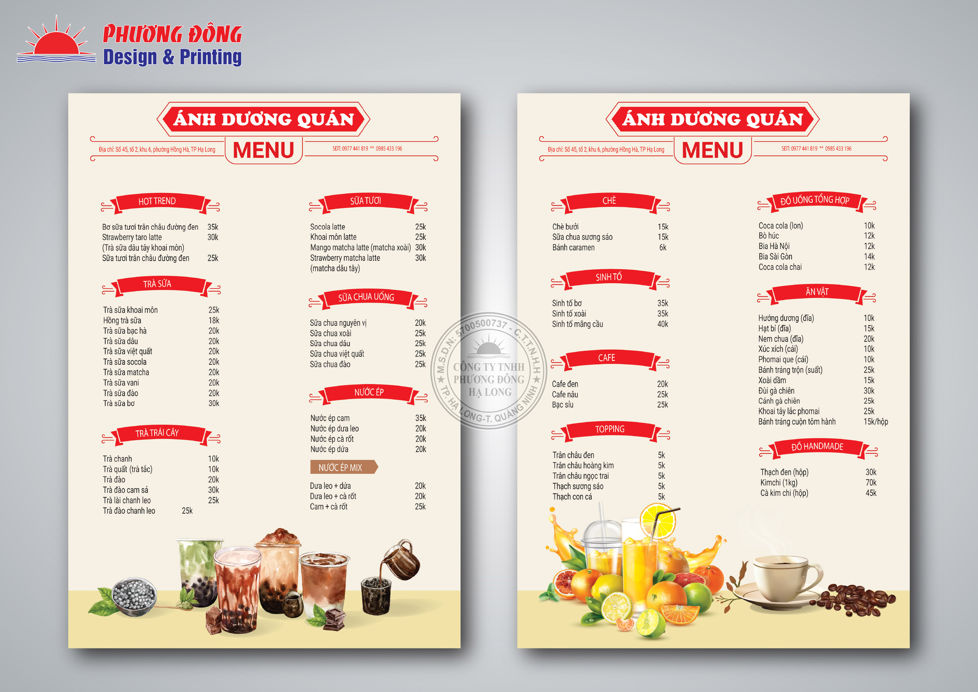 Công ty in Phương Đông Hạ Long cung cấp dịch vụ thiết kế và in ấn menu, làm menu theo yêu cầu.
