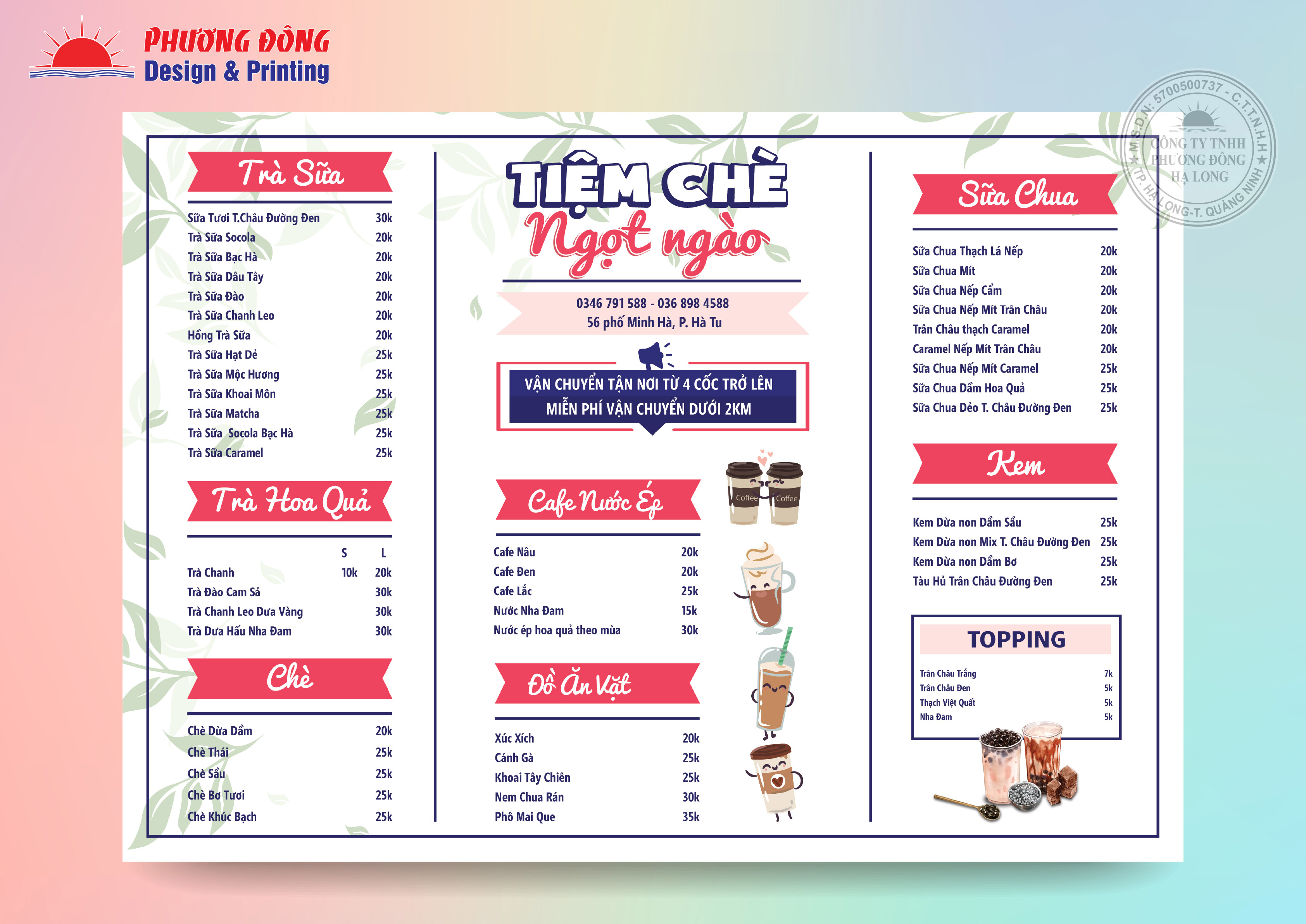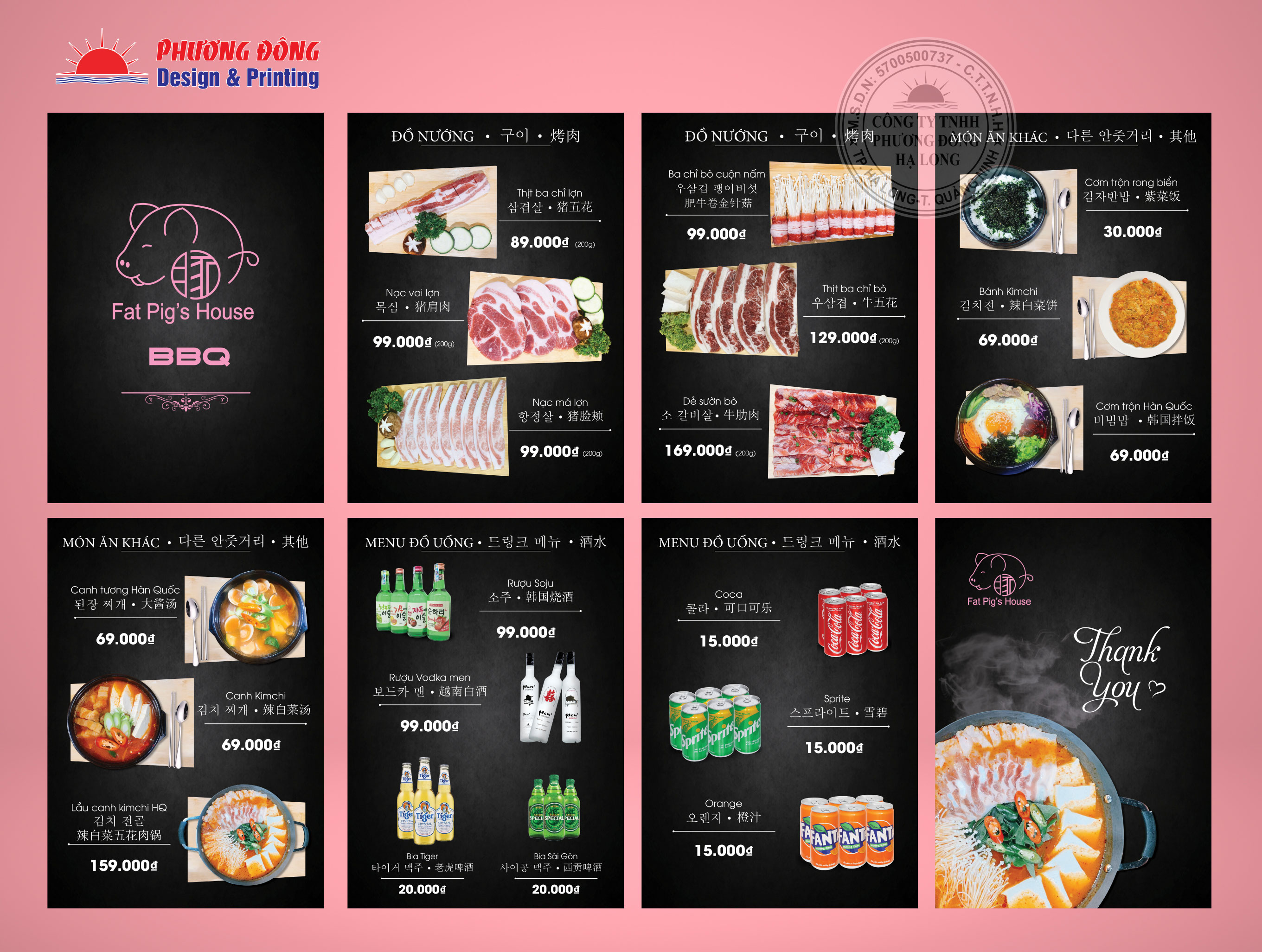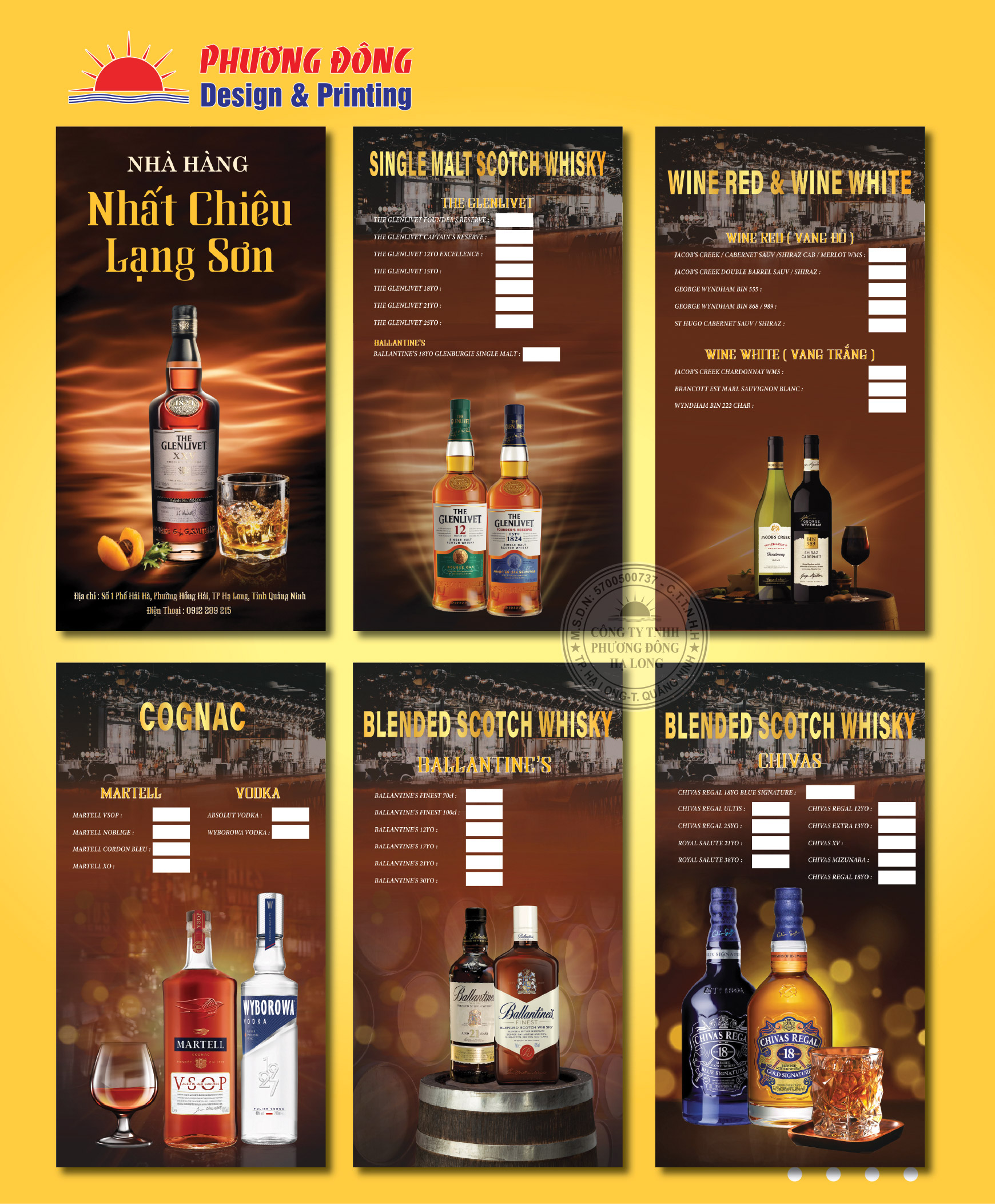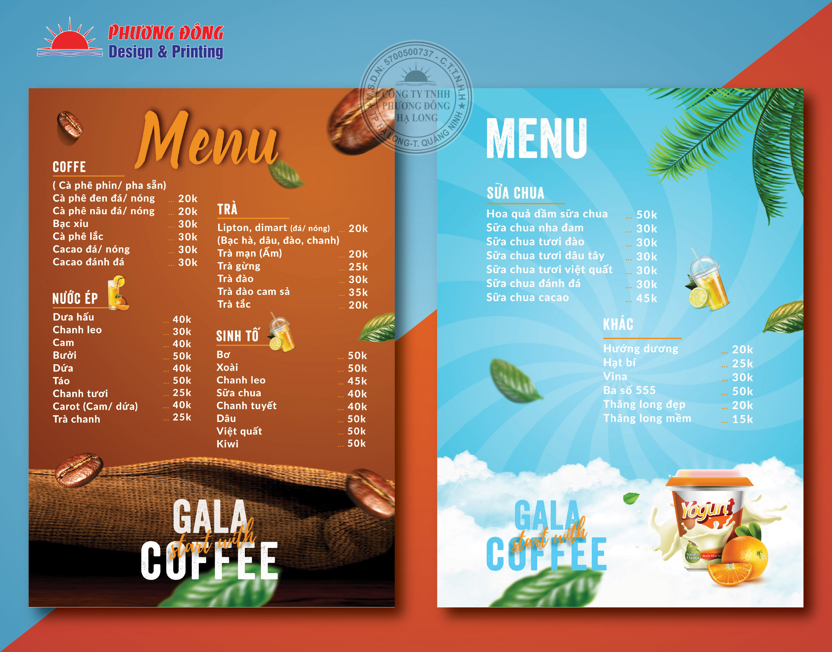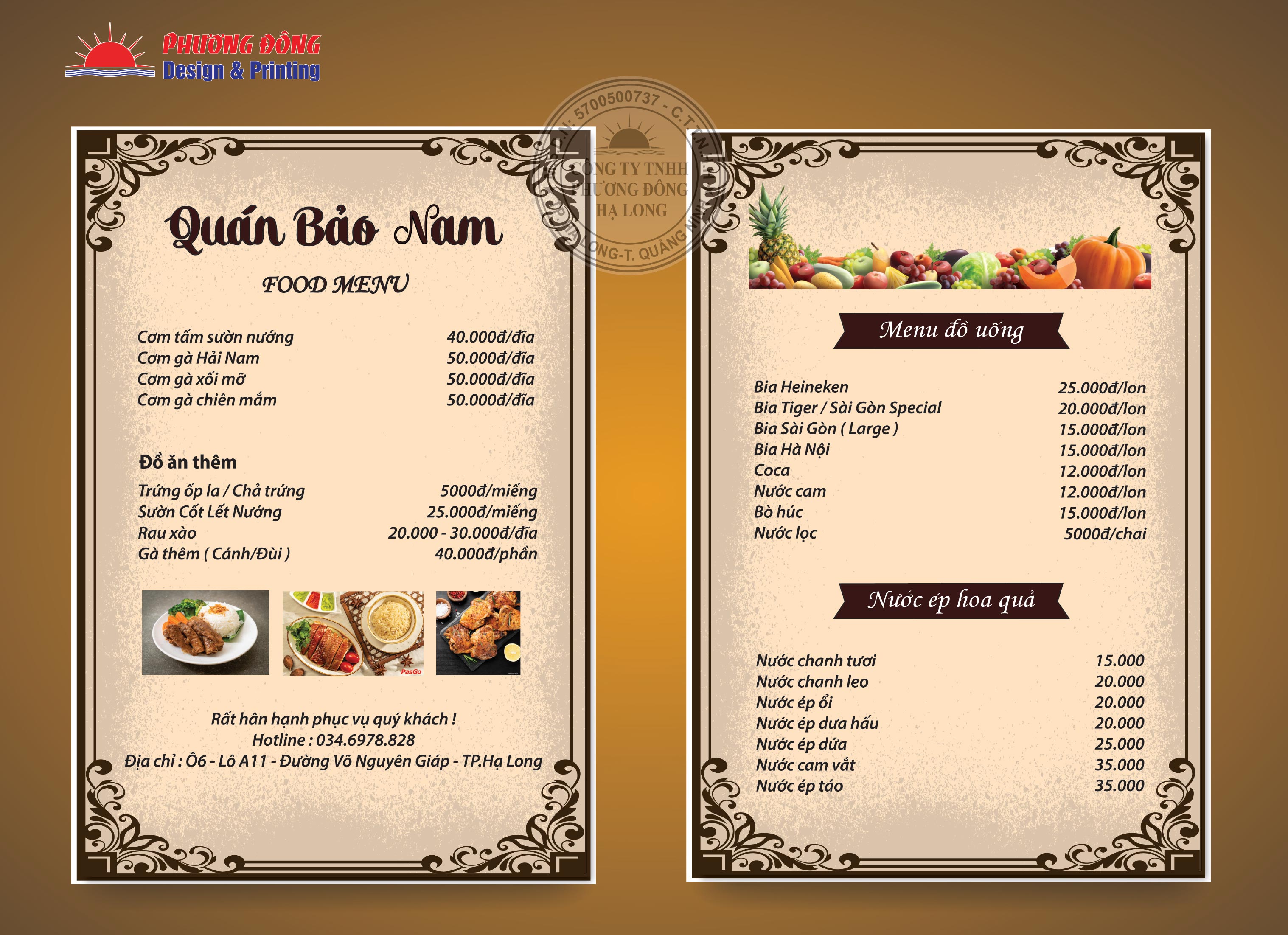 Công ty in Phương Đông Hạ Long cung cấp dịch vụ thiết kế và in ấn menu, làm menu theo yêu cầu.