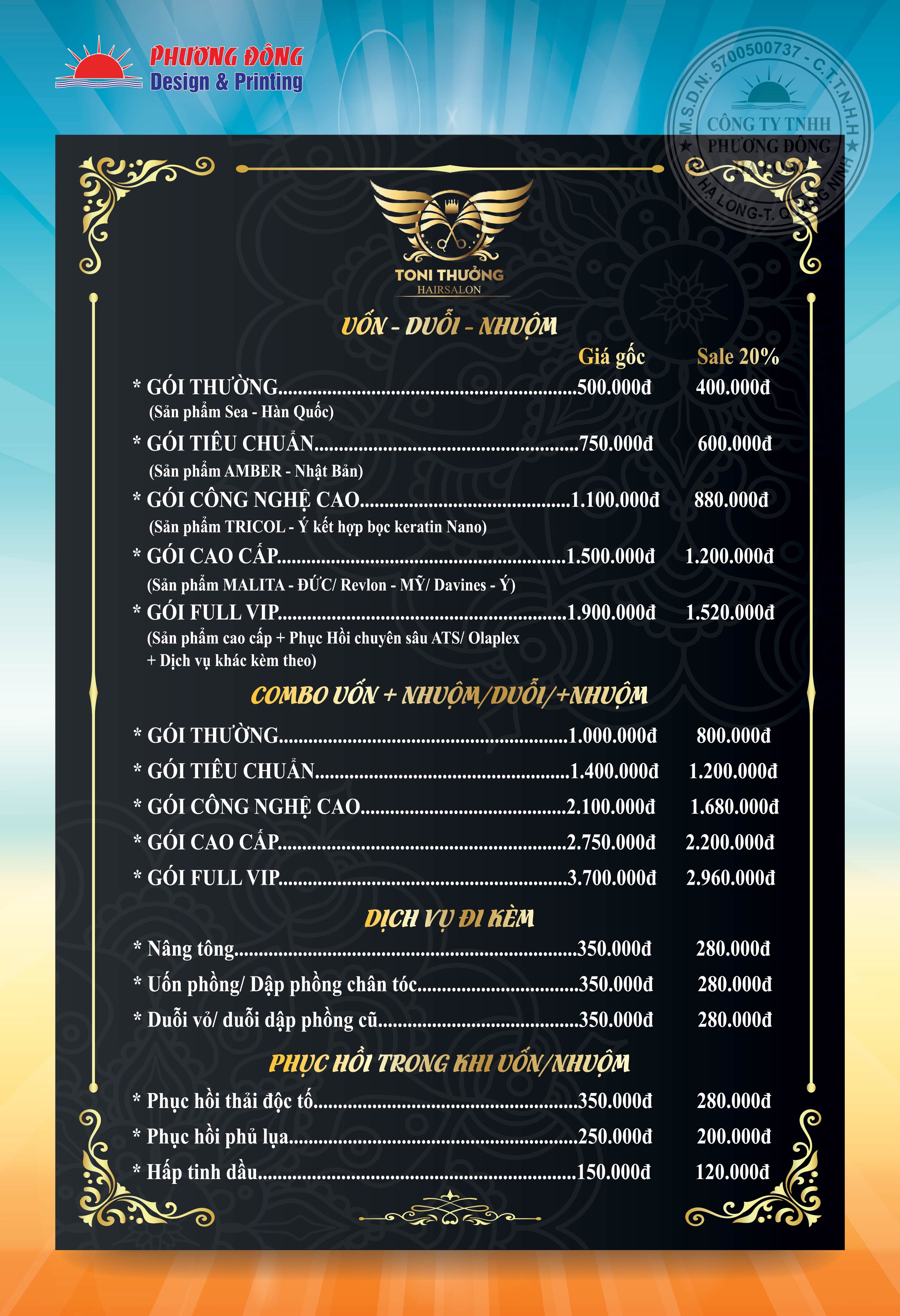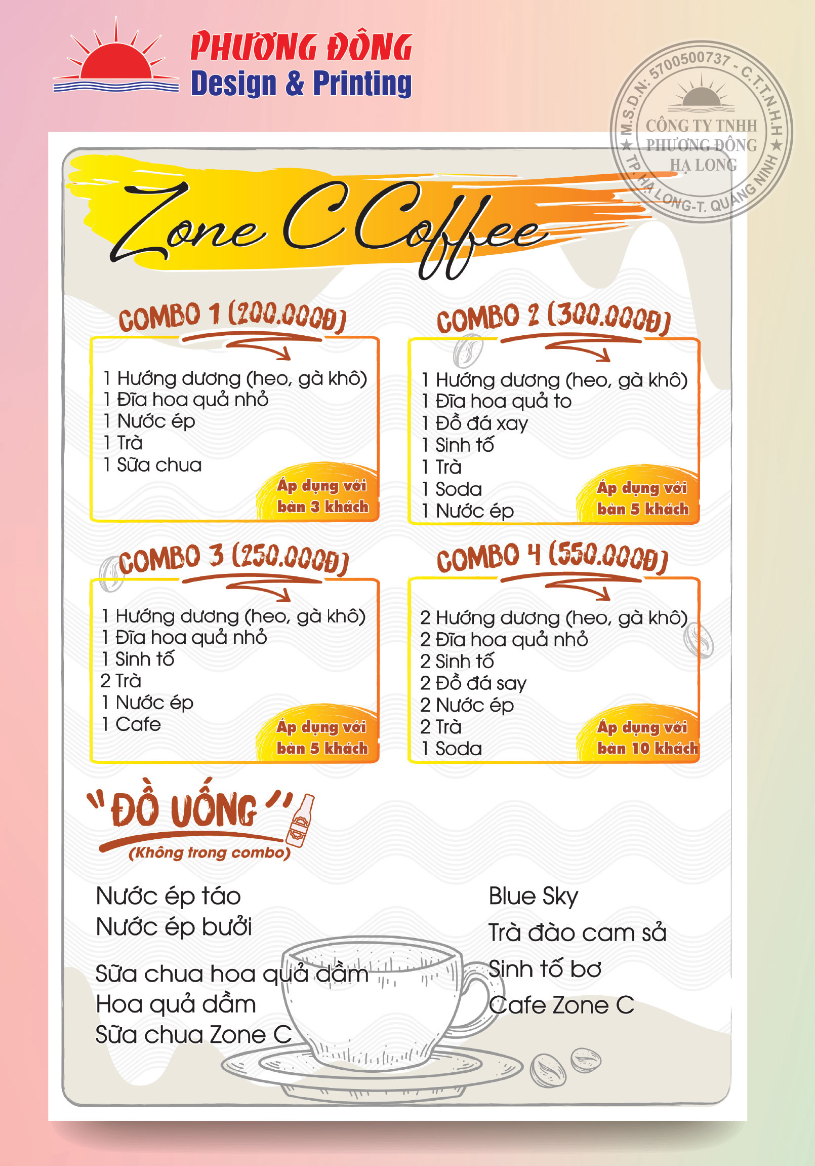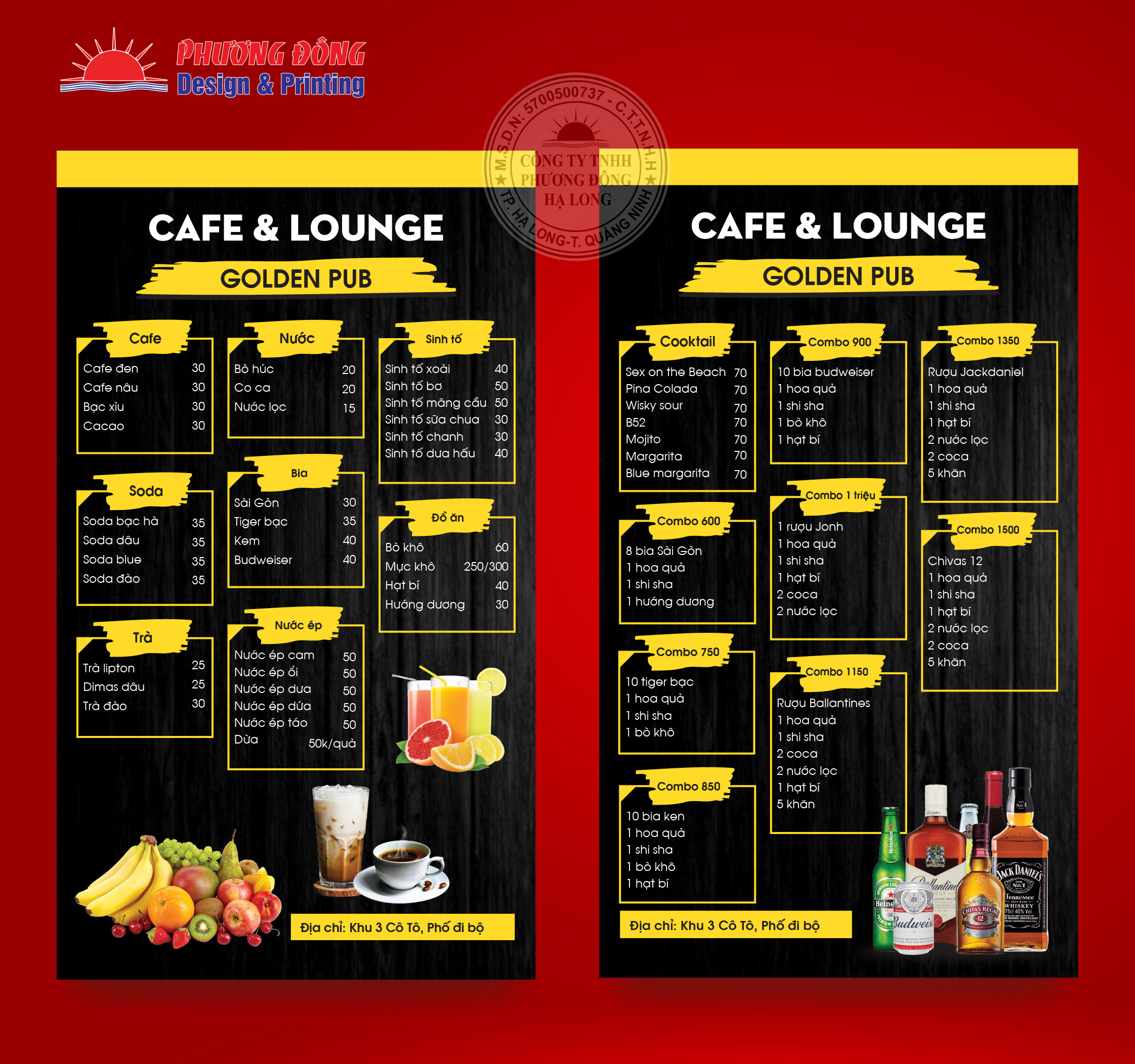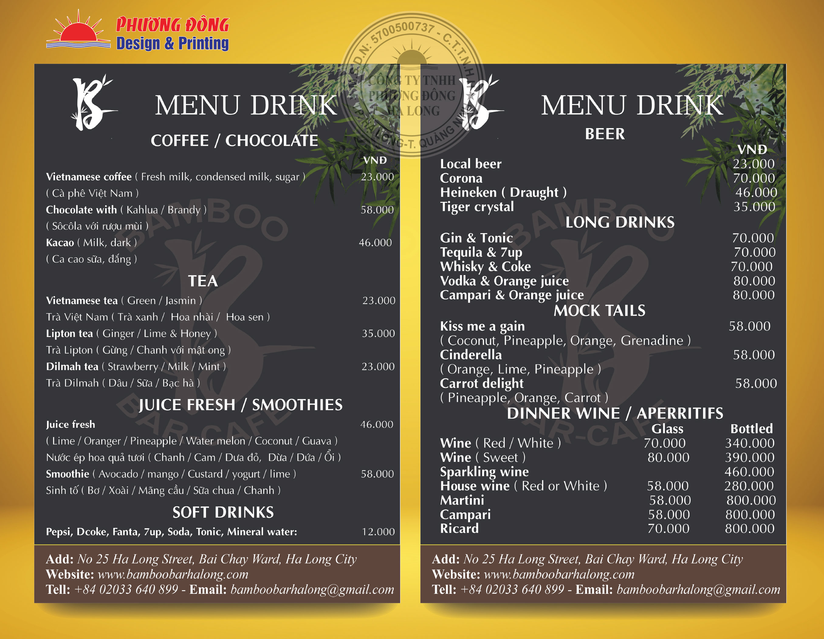 Công ty in Phương Đông Hạ Long cung cấp dịch vụ thiết kế và in ấn menu, làm menu theo yêu cầu.